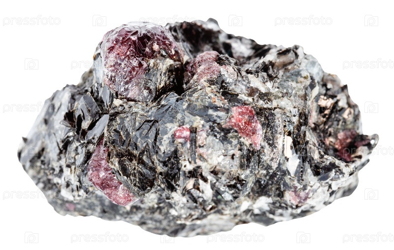 Необработанные красные гранаты в камне, изолированные на белом