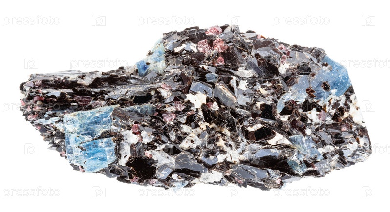Необработанный синий кианит в биотитовой породе, изолированный на белом