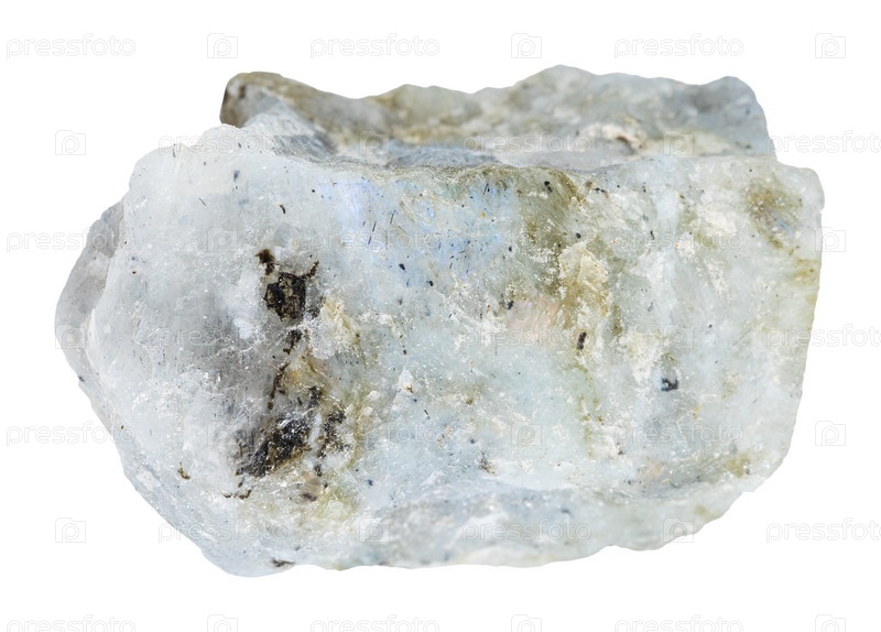 Необработанный серый минерал лабрадорита, изолированный на белом