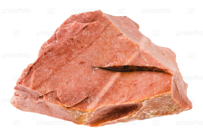Неполированный красный минерал мукаит, изолированный на белом