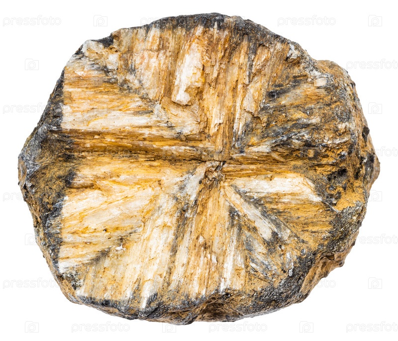 Неполированный минерал хиастолит, изолированный на белом