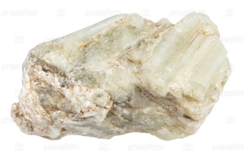 Неполированный минерал берилла, изолированный на белом