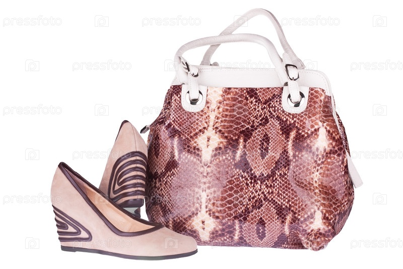 Бежевые замшевые туфли и сумка из змеиной кожи,
