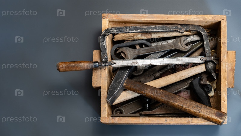 Деревянный ящик со старыми инструментами