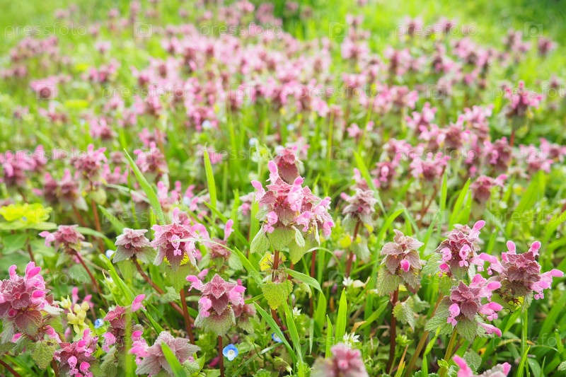 Lamium purpureum, крапива красно-фиолетовая или архангел фиолетовый, однолетнее травянистое цветущее растение.Цветы зигоморфные с верхней капюшонообразной листочкой, двумя листьями нижней губы и мелкими зубовидными лепестками