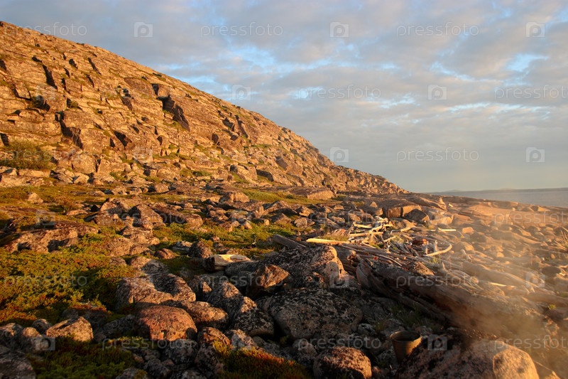 Остров Большая Нохкалуда в закатных лучах солнца.Вид 2. Белое море. Северная Карелия. Лето 2006 года