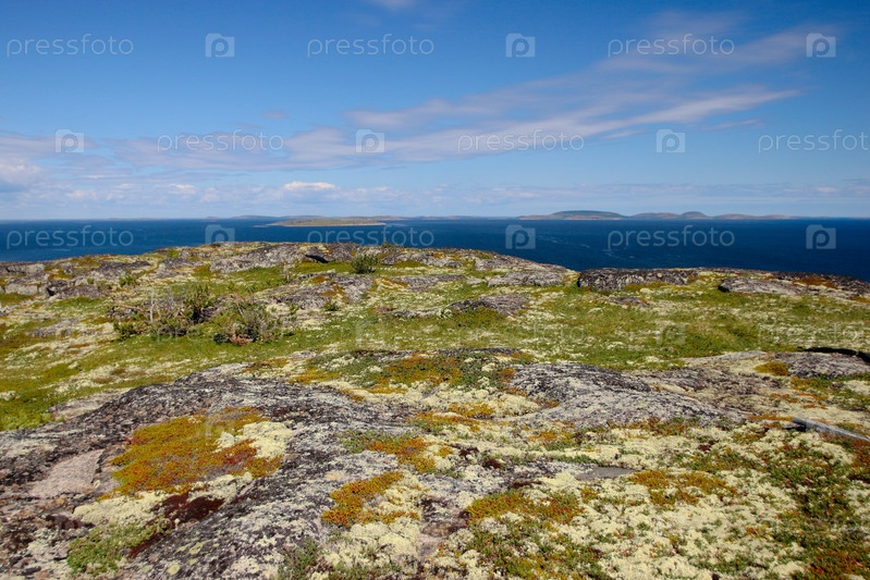 Вид днем с верхней точки острова Большая Нохкалуда на остров Малая Нохкалуди и острова архипелага Кузова. Вид 3. Белое море. Северная Карелия. Лето 2006 года