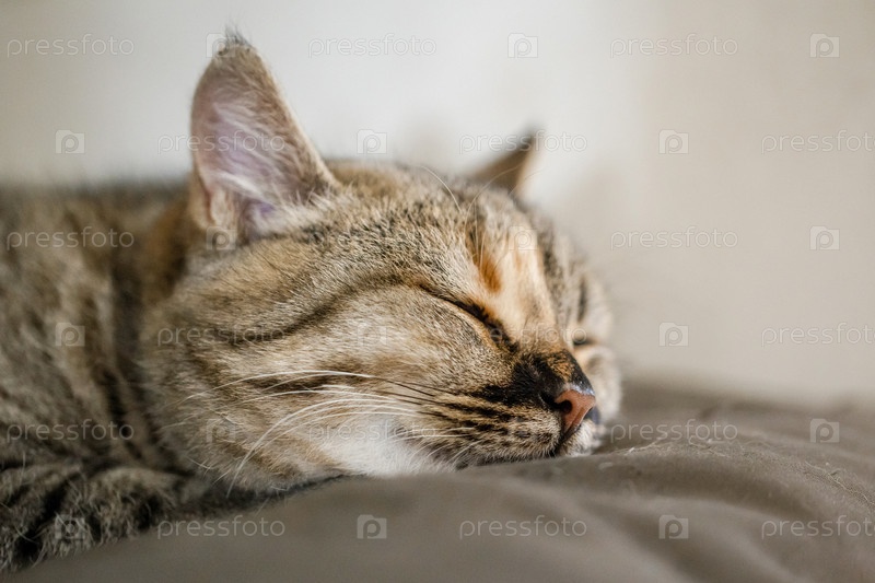 Милый молодой кот спит на солнце на подоконнике