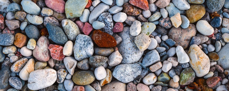 Разноцветные камни на пляже, вид сверху
