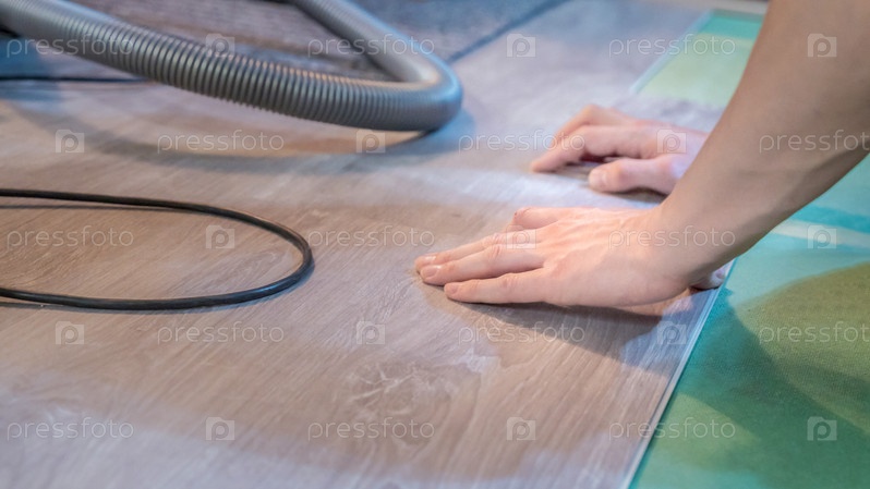 Мастер укладывает новый пол, крупный план