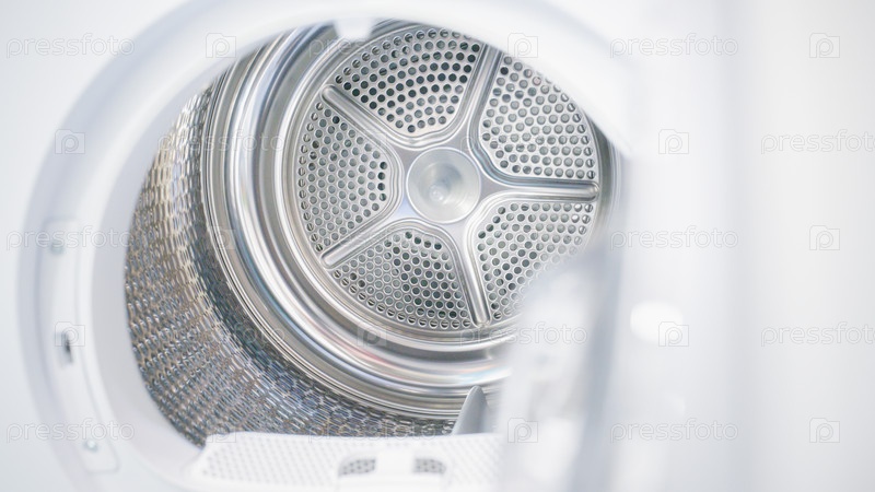 Открытая дверца пустой стиральной машины крупным планом