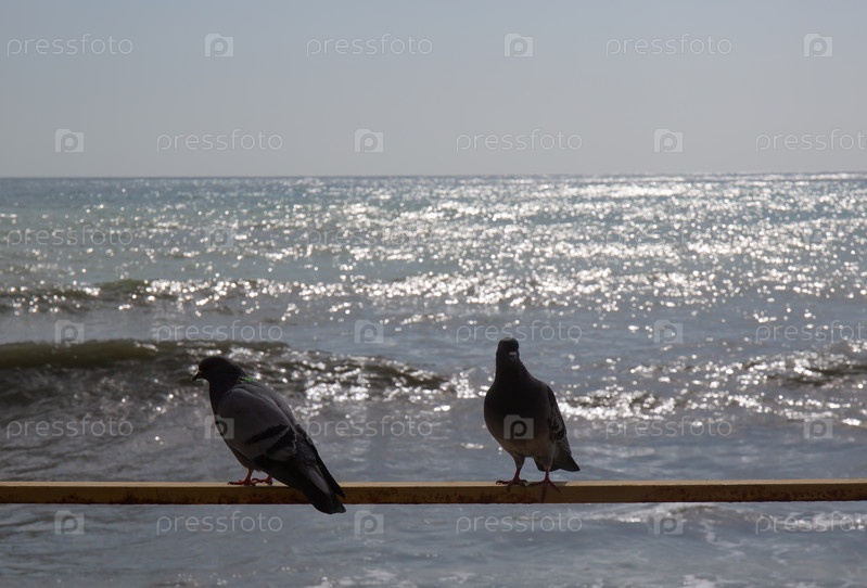 Два голубя на парапете у моря