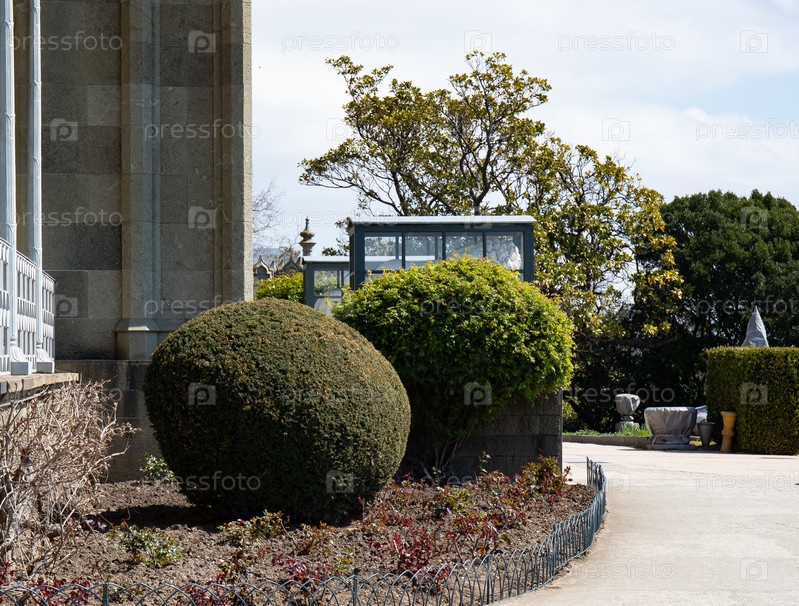 Два круглых куста во дворе Воронцовского замка на Крымском полуострове