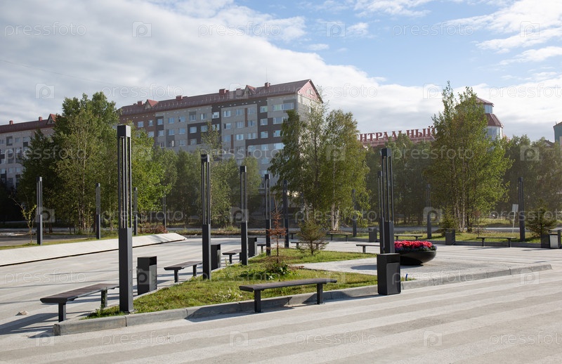 Красивый фонтан в центре города Ноябрьска на Ямале