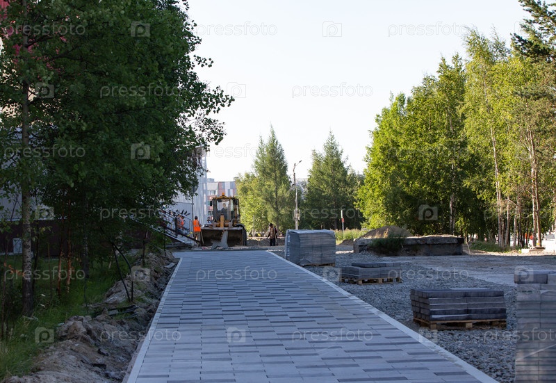 Ремонт дороги в центре города Ноябрьска на Ямале летом 2023 года