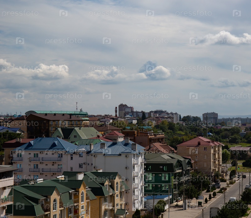 Вид на красивые здания с колеса обозрения в деревне Витязево летом