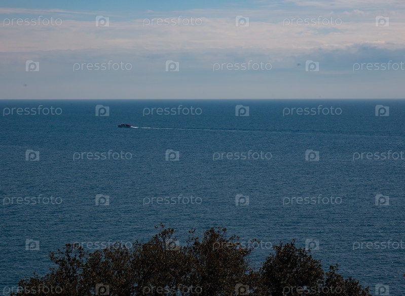 Вид на деревья на фоне Черного моря из Воронцовского замка Крым
