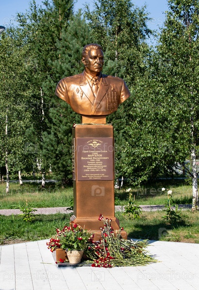 Памятник командующему ВДВ Маргелову на площади Геологов в городе Ноябрьске Перевод Никто, кроме нас Герой Советского Союза Василий Филиппович Маргелов Генерал-командующий Воздушно-десантными войсками СССР