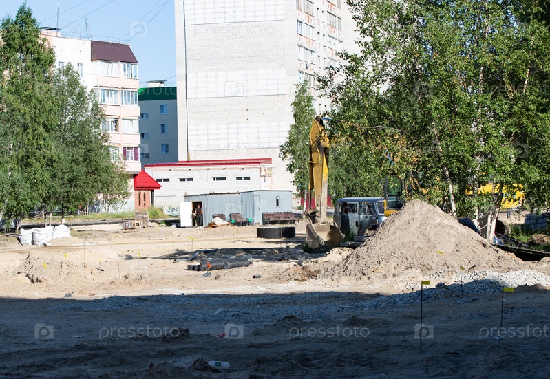 Ремонт дороги в центре города Ноябрьска на Ямале летом 2023 года