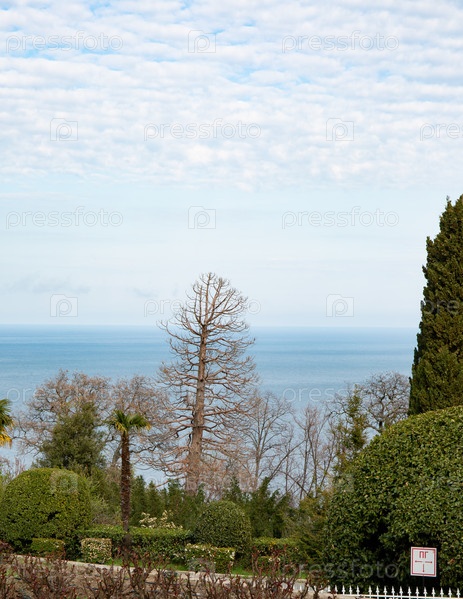 Вид на деревья на фоне Черного моря из Воронцовского замка Крым