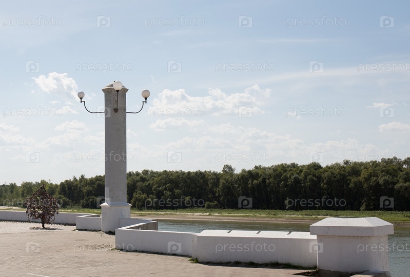 Россия Сибирь Омск Вид на город с набережной реки Иртыш летом