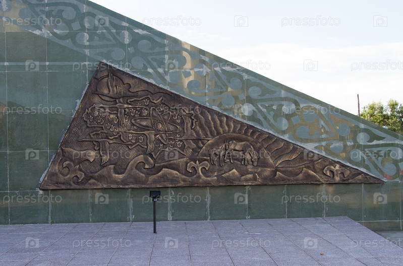 Красивая стела в центре города Кокшетау Республики Казахстан летом