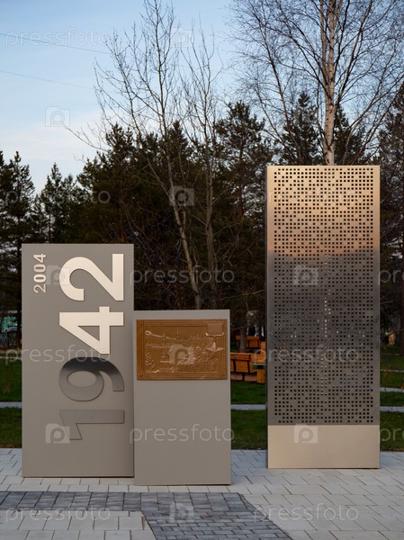 Стела Великой Отечественной войны 1941-1945 годов в центре города Ноябрьска на Ямале летом