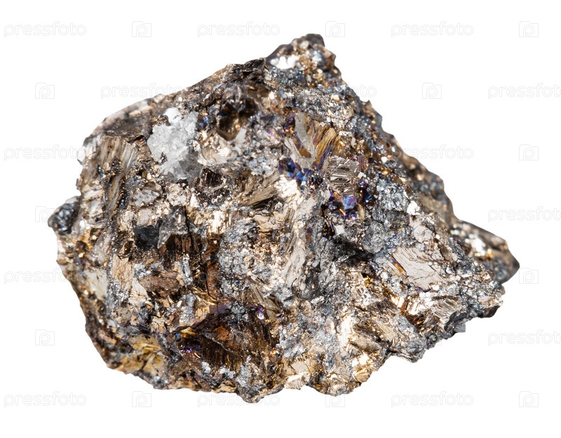 Необработанная самородная висмутовая руда, изолированная на белом