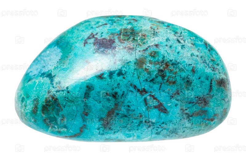 Упавший драгоценный камень хризоколла, изолированный на белом