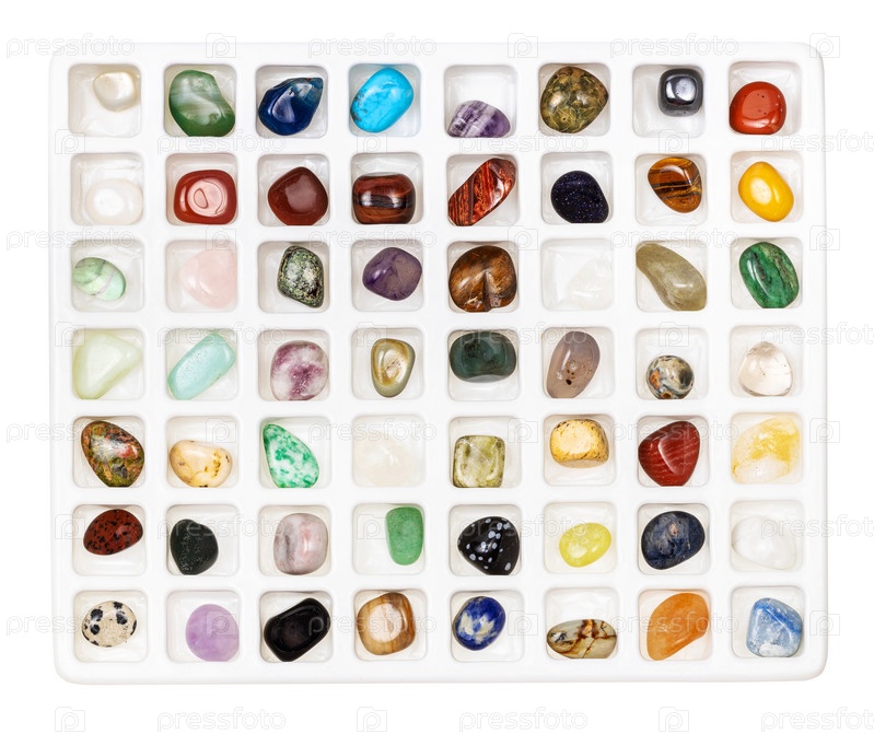 Драгоценные камни для геологической коллекции в открытой коробке