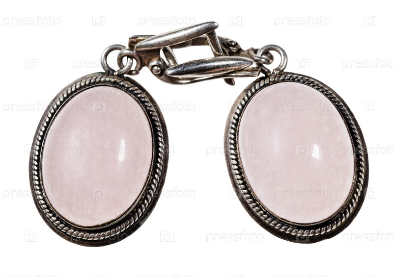 Серьги с натуральными камнями розового кварца