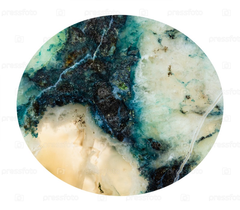 Кабошон из плоского мохового агата, изолированный драгоценный камень