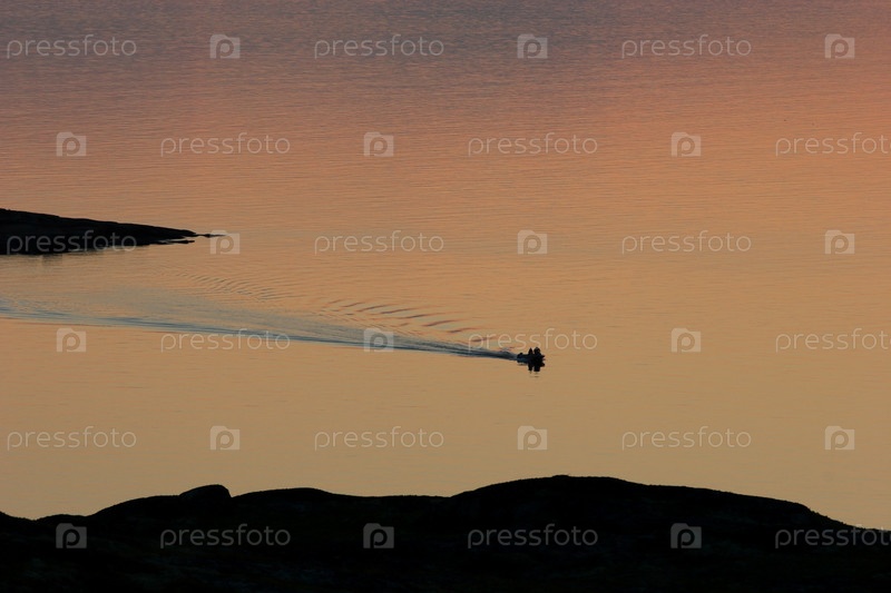 Закат. Остров Большая Нохкалуда. Рыбаки на катере. Белое море. Северная Карелия. Лето 2006 года