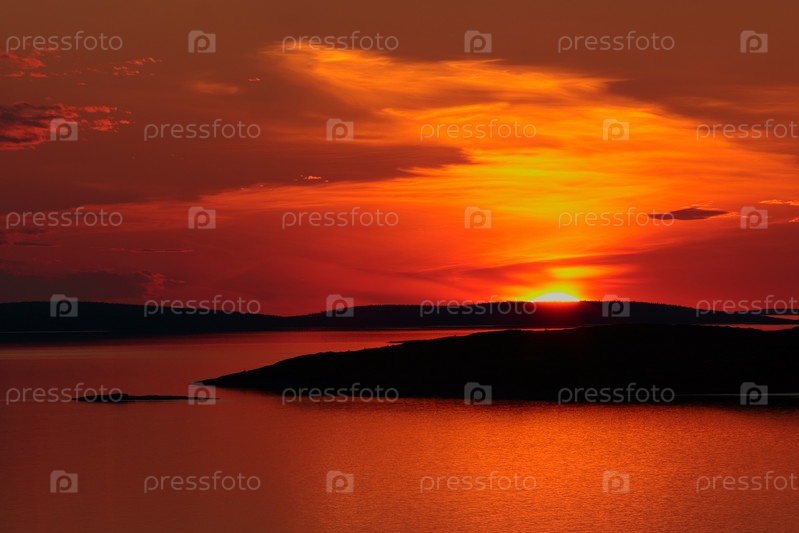 Солнце на закате. Острова архипелага Кузова. Вид 8. Белое море. Северная Карелия. Лето 2006 года
