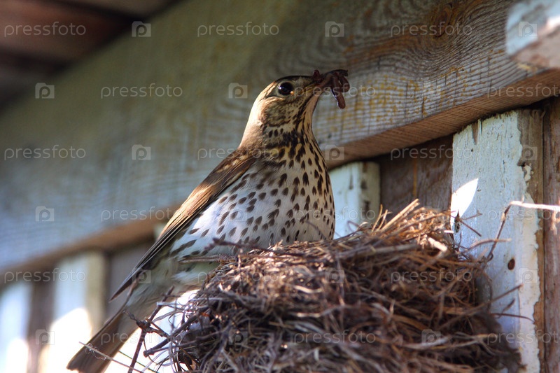 Дрозд-рябинник с червяком