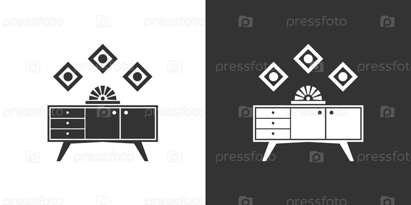 Мебельная интерьерная иконка с тумбочкой. Черная и белая
