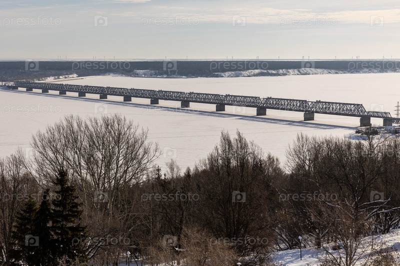 Вид на Императорский мост через Волгу. Россия. Ульяновск. Вид на имперский мост над рекой Волгой