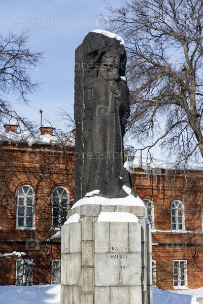 Россия. Ульяновск. Памятник с скульптурой Карла Маркса. Россия. Ульяновск. Монумент со статуей Карл Маркс