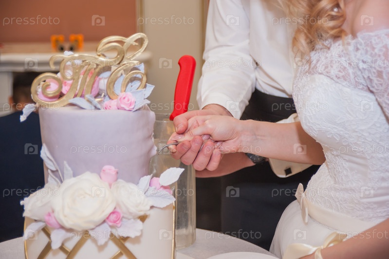 Жених и невеста вместе разрезали свадебный торт и заплели первую косу