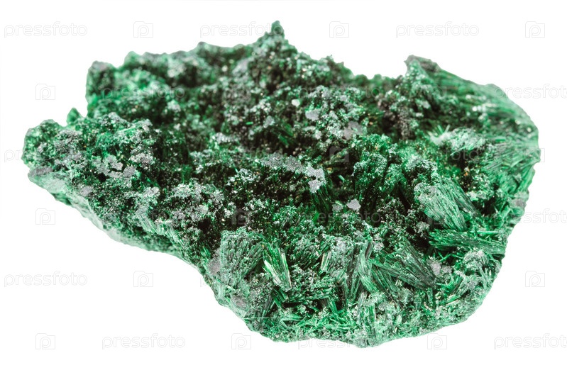 Сырой волокнистый минерал малахита, изолированный на белом