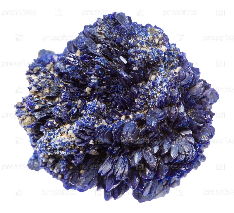 Друза необработанных кристаллов азурита, изолированных на белом