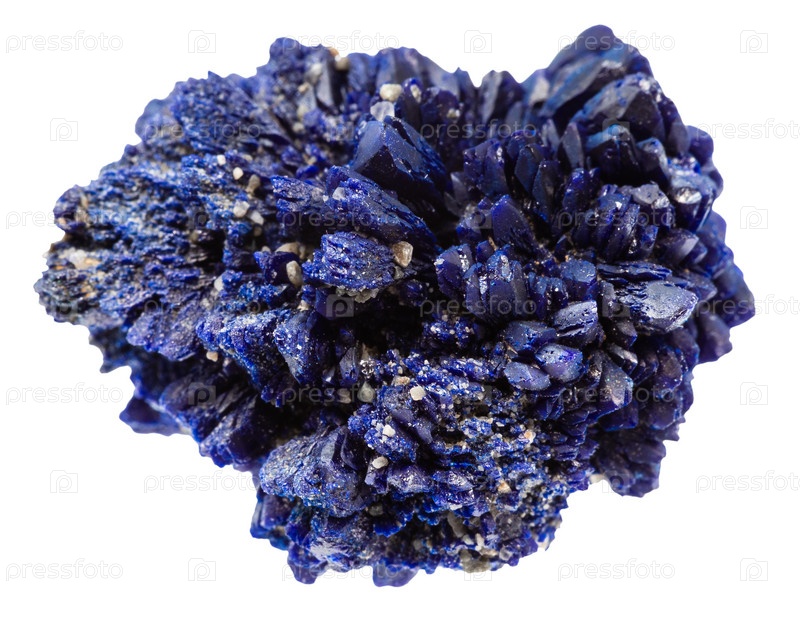 Друза грубых кристаллов азурита, изолированных на белом