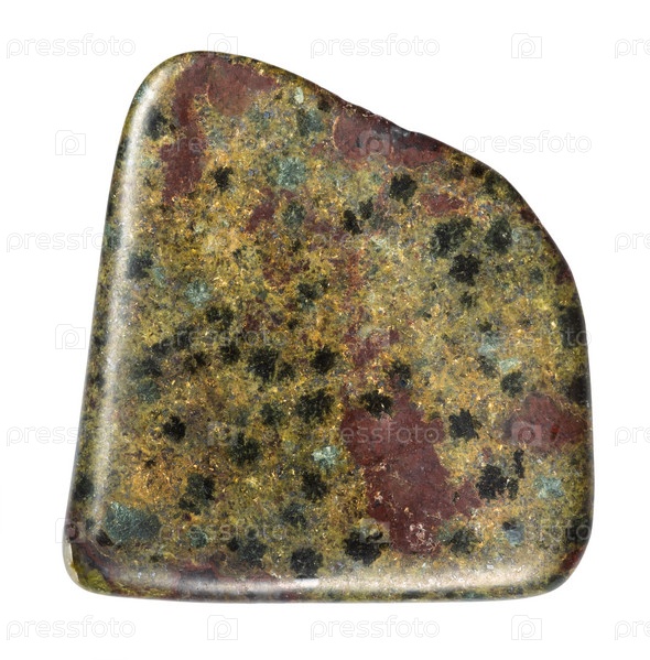 Полированный минерал эпидозит, изолированный на белом
