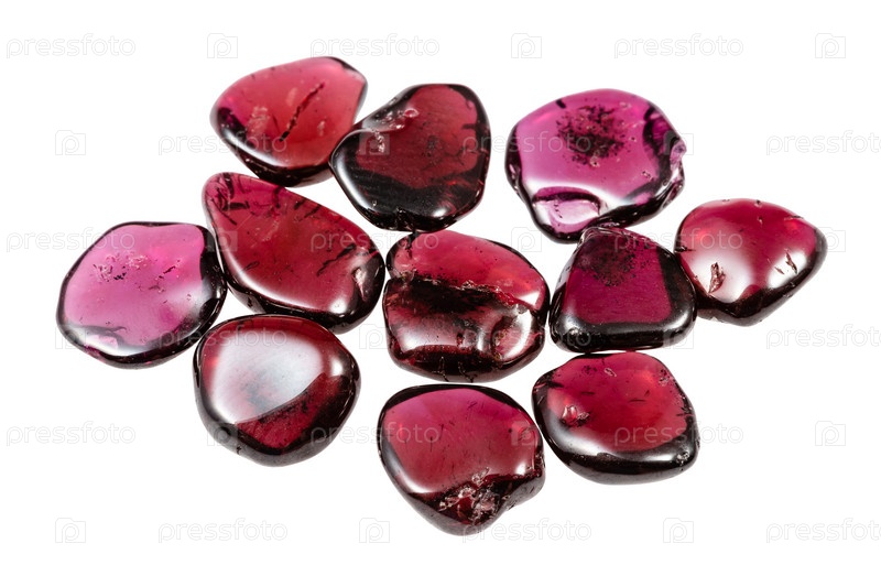 Множество полированных кристаллов родолита, изолированных на белом