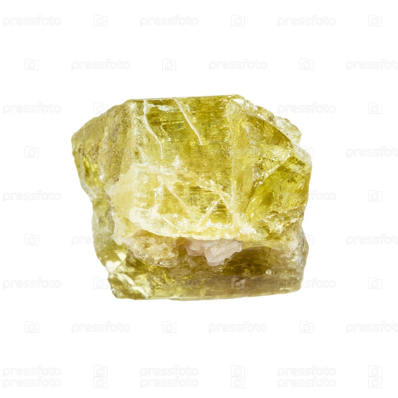 Неполированный минерал хризоберилл, изолированный на белом