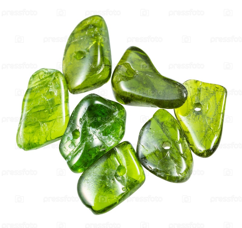 Несколько бусин из минерала хромдиопсид