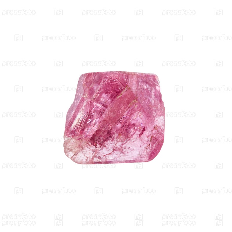 Кристалл необработанной розовой шпинели, изолированный на белом