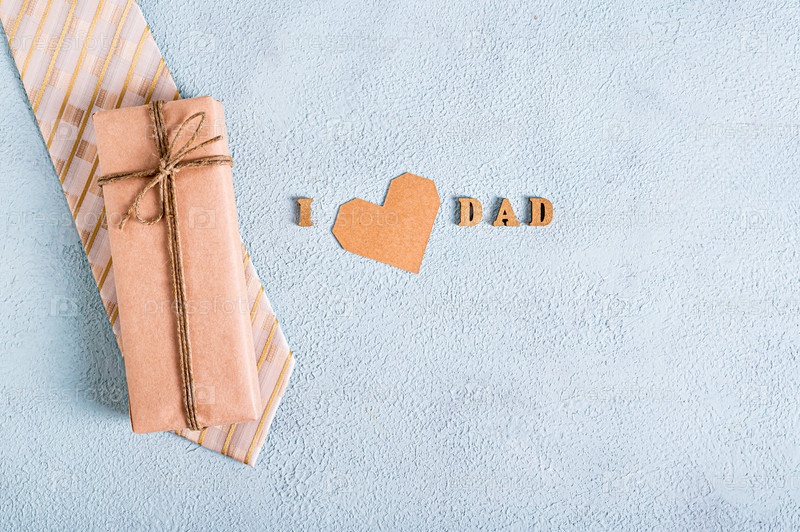 Подарок ко Дню отца на галстуке, сердце и надписи на синем фоне