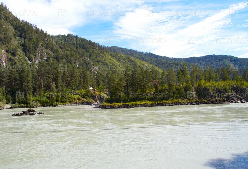 Красивые виды с горы на реку Катунь в Горном Алтае, Россия