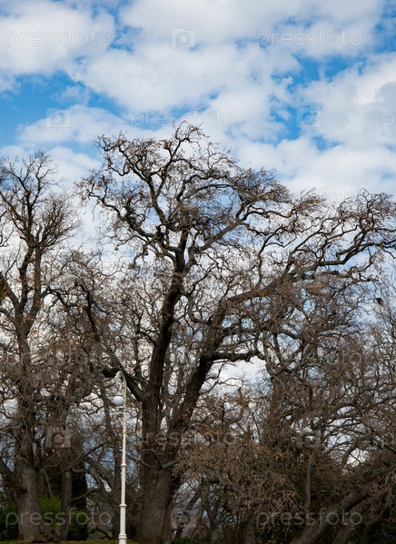Старое дерево в парке на фоне неба в Крыму
